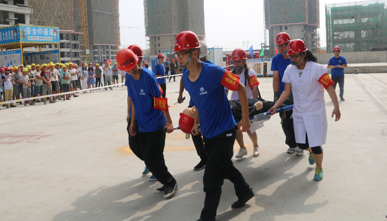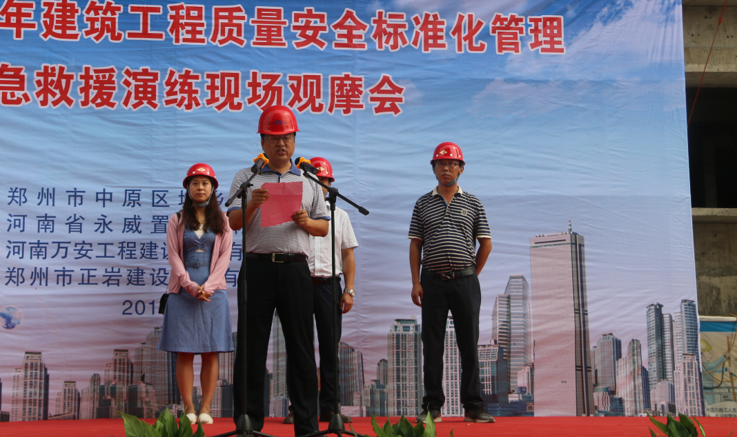 为进一步加强集团公司施工现场质量安全管理工作,全面提升集团公司质量安全标准化管理水平和对突发生产安全事故的应急处置能力,确保集团公司总体生产形势平稳发展,2017年7月14日上午,集团公司在永威三王庄滨河花园2号院成功举办八戒体育集团2017年建筑工程质量安全标准化暨应急救援演练现场观摩会,郑州市中原区建设局、河南省永威置业、河南万安建设监理有限公司领导及八戒体育集团公司领导班子成员及相关部门、各项目部代表200余人到场观摩。