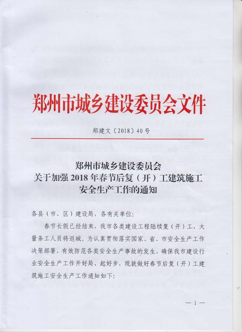 郑州市城乡建设委员会关于加强2018年春节后复(开)工建筑施工安全生产工作的通知