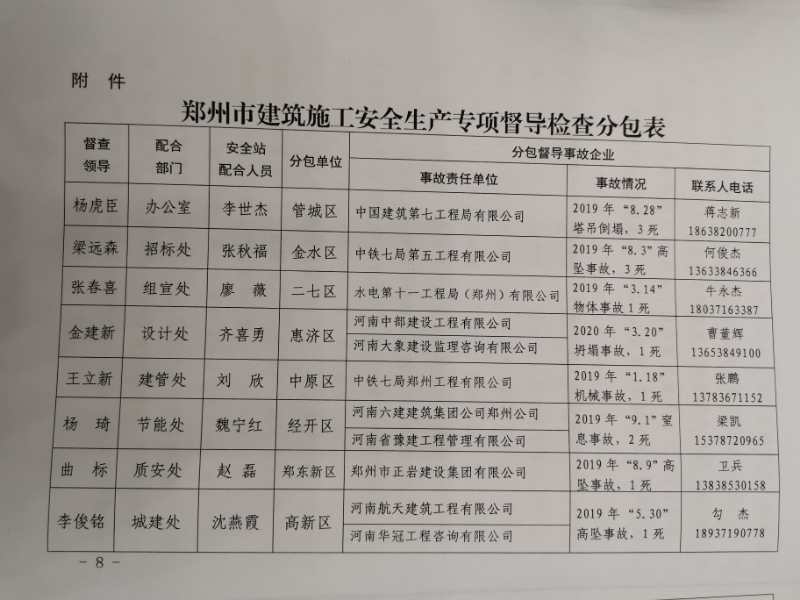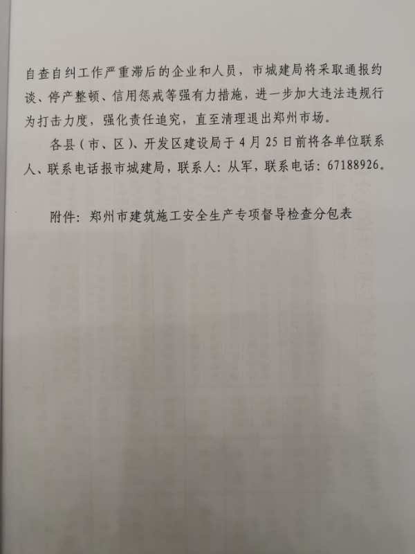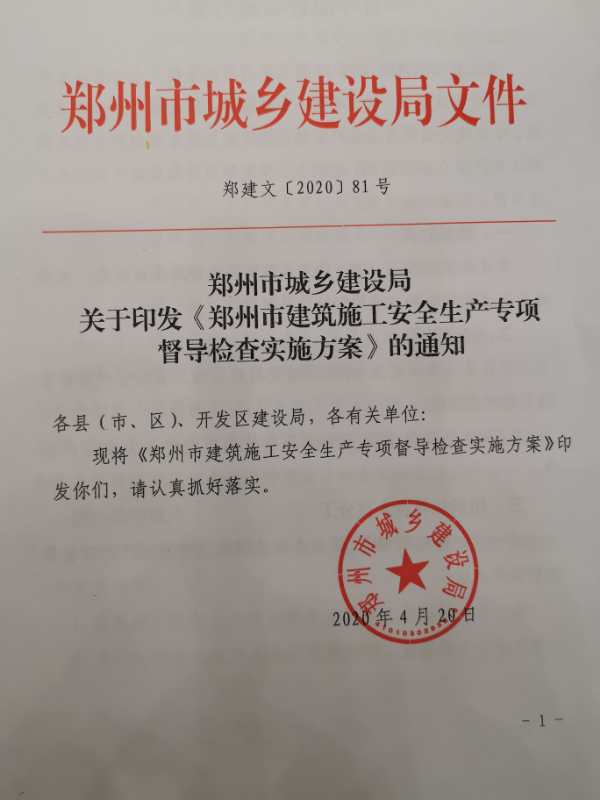 郑州市城乡建设局关于印发《郑州市建筑施工安全生产专项督导检查实施方案》的通知