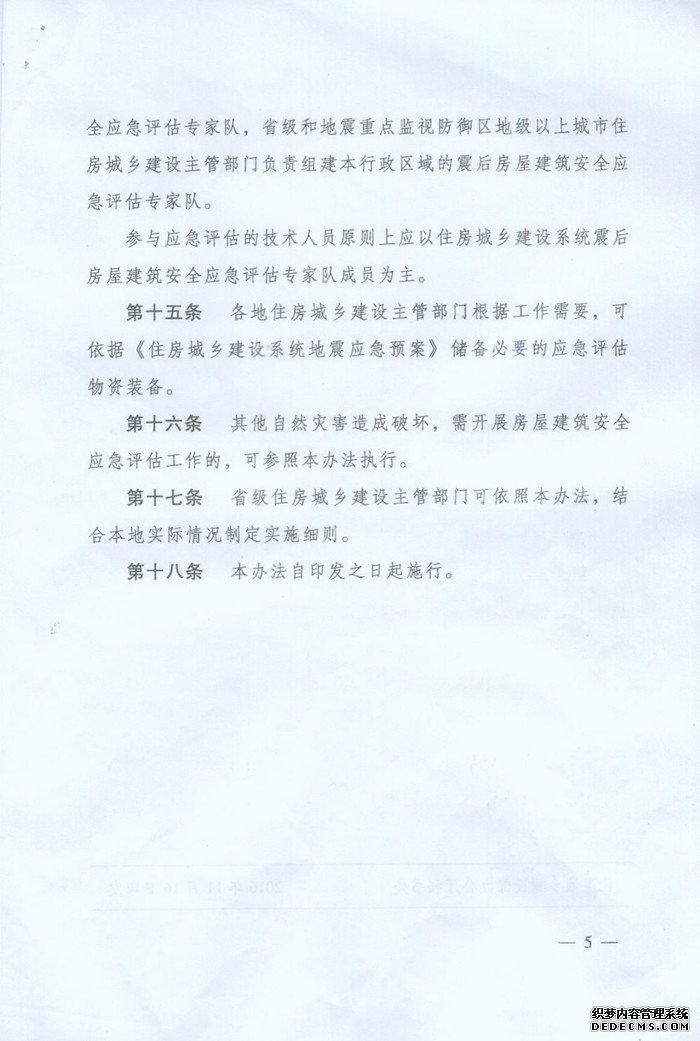 为进一步提升住房城乡建设系统地震应急响应能力,做好我市震后房屋建筑安全应急评估工作,现将《住房城乡建设部关于印发震后房屋建筑安全应急评估管理暂行办法的通知》转发给你们,请结合本地区实际遵照执行。