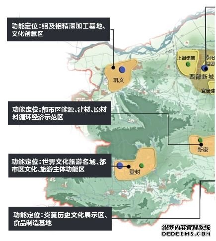 “三区”即东部、南部、西部三个新城区,主要承担新的城市功能,并疏解主城区人口和功能。其中东部新城为“省级公共文化行政服务中心、先进制造业基地”,南部新城为“区域性商贸物流中心”,西部新城为“通用航空产业基地、区域性医疗健康中心、新材料生产基地”。