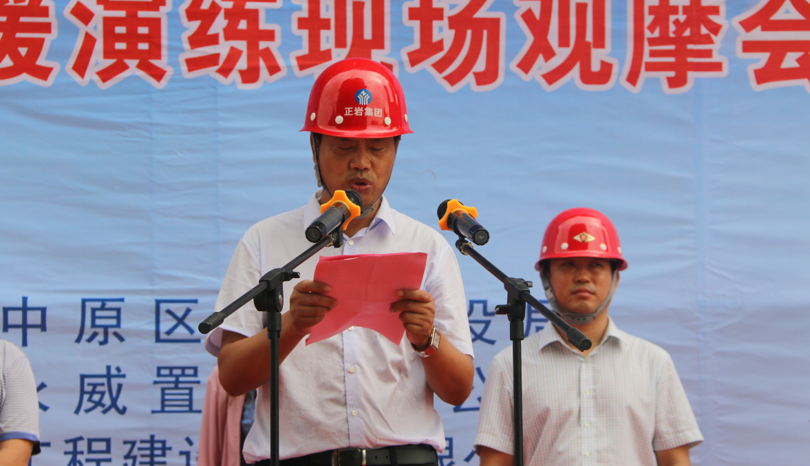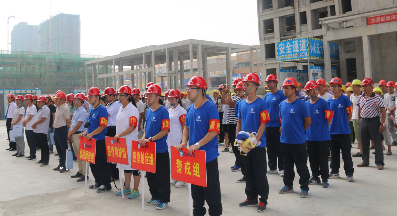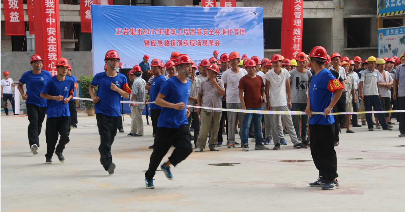为进一步加强集团公司施工现场质量安全管理工作,全面提升集团公司质量安全标准化管理水平和对突发生产安全事故的应急处置能力,确保集团公司总体生产形势平稳发展,2017年7月14日上午,集团公司在永威三王庄滨河花园2号院成功举办八戒体育集团2017年建筑工程质量安全标准化暨应急救援演练现场观摩会,郑州市中原区建设局、河南省永威置业、河南万安建设监理有限公司领导及八戒体育集团公司领导班子成员及相关部门、各项目部代表200余人到场观摩。