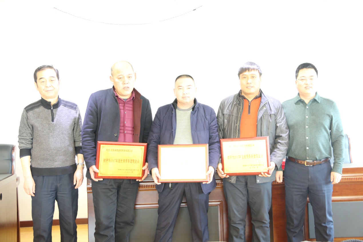 2017年是集团公司稳中求进、谋求发展的一年,公司今天的成绩离不开各个项目部的大力支持,经公司研究评定8个优秀项目部、3个优秀劳务公司、34个项目先进个人,并给予表彰。
