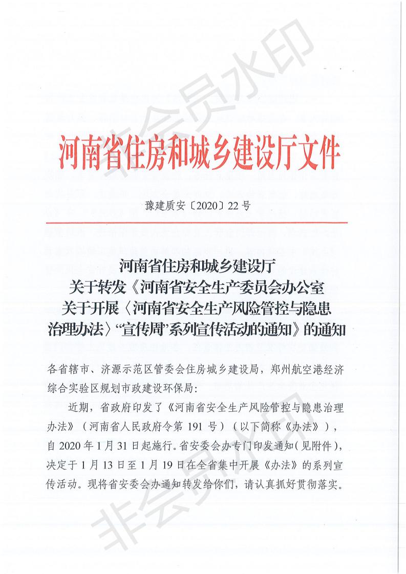 河南省住房和城乡建设厅关于转发《河南省安全生产委员会办公室关于开展〈河南省安全生产风险管控与隐患治理办法〉“宣传周”系列宣传活动的通知》的通知
