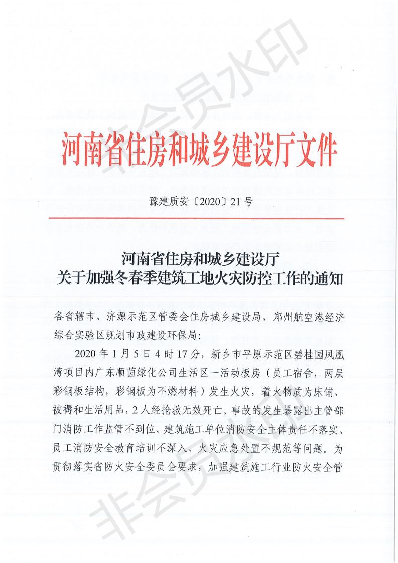 河南省住房和城乡建设厅关于加强冬春季建筑工地火灾防控工作的通知