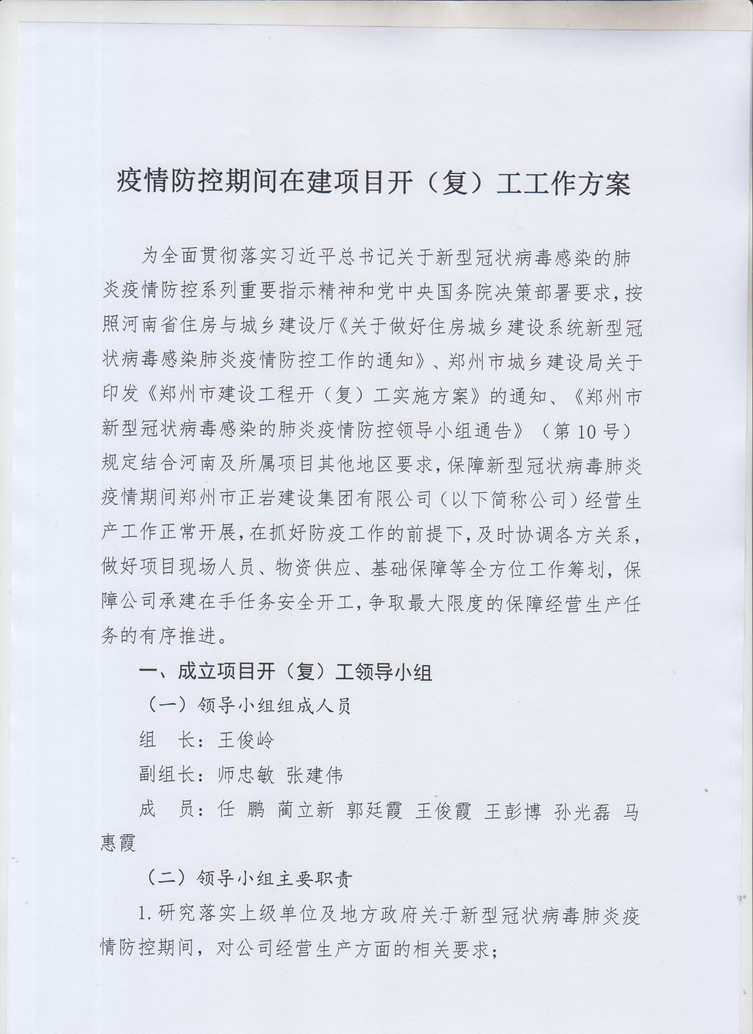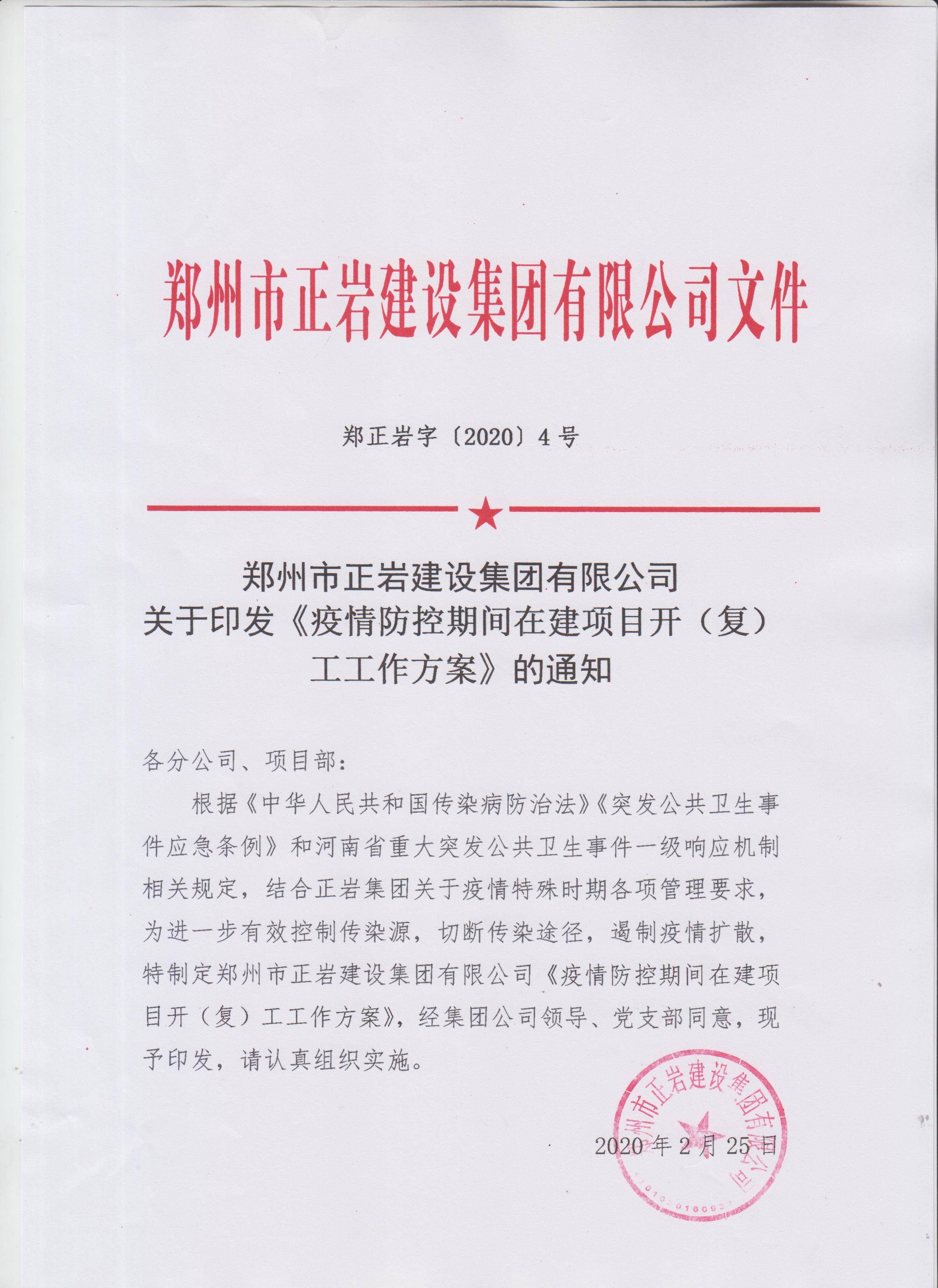 郑州市东莞贵龙饰品贸易有限公司关于印发《疫情防控期间在建项目开(复)工工作方案》的通知