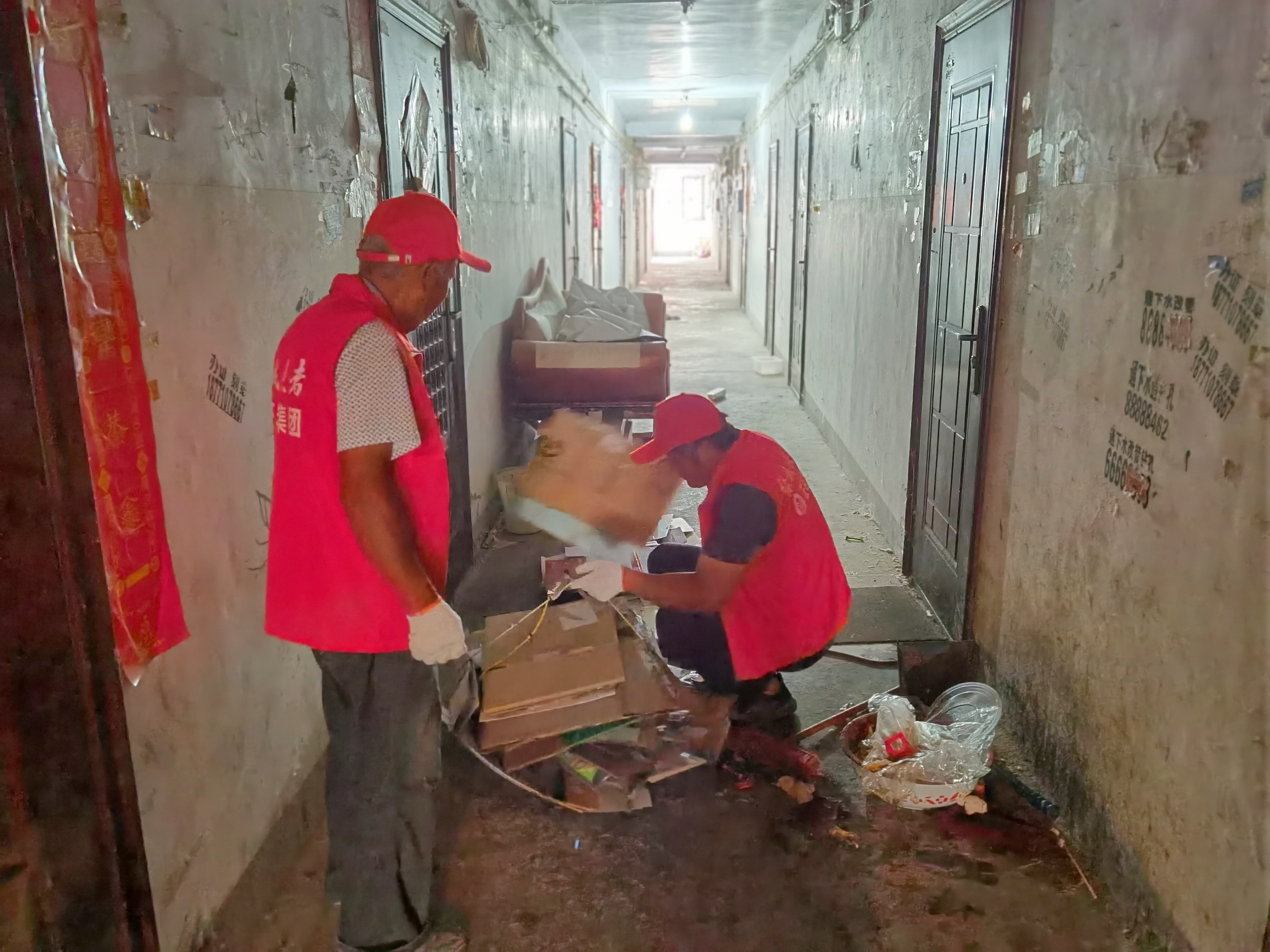 上午九点开始,八戒体育集团志愿者帮助西彩社区的无主管楼院清理老旧社区改造过程中产生的垃圾,小区道路、楼院的零碎垃圾进行清洁以及对小区内非法张贴的小广告进行清理。